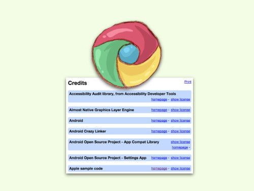 Bei der Umsetzung des Chrome-Browsers haben die Entwickler von Google auf viele Komponenten von anderen Programmierern zurückgegriffen. Mehr als 170 verschiedene Open-Source-Elemente finden sich in Google Chrome. Welche das sind, kann man selbst erkunden.