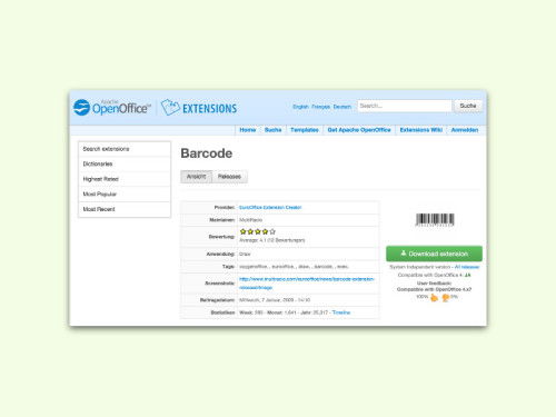 In den meisten Office-Programmen gibt’s keine Funktion zum Einfügen von Barcodes. Wer aber genau das braucht – etwa beim Erstellen von Flyern oder Info-Broschüren, kann auf ein kostenloses OpenOffice-Plugin für Draw zurückgreifen.