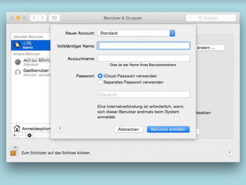 Wer seinen Mac nicht allein nutzt, sondern mit anderen teilt, der kann für die weiteren Nutzer zusätzliche Konten im Betriebssystem einrichten. Mit den Systemeinstellungen ist das in zwei Minuten erledigt.