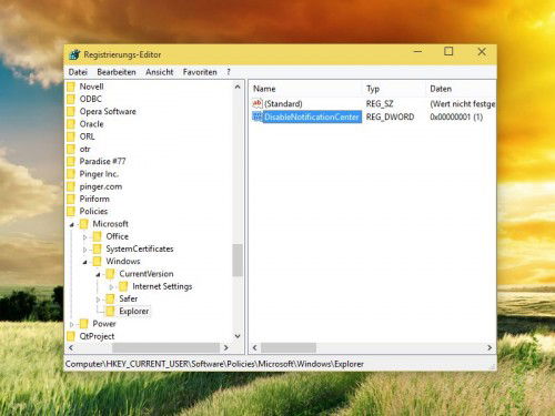 Benachrichtigungs-Zentrale in Windows 10 deaktivieren