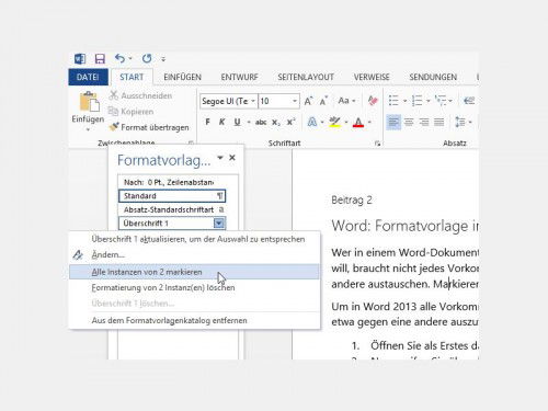 Wer in einem Word-Dokument Formatvorlagen verwendet und das Design vereinheitlichen will, braucht nicht jedes Vorkommen einer bestimmten Formatierung einzeln gegen eine andere austauschen. Markieren Sie doch einfach alle Vorkommnisse auf einmal! Wie?