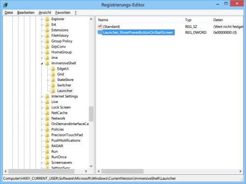 Windows 8.1: Ausschalten-Knopf von der Startseite entfernen