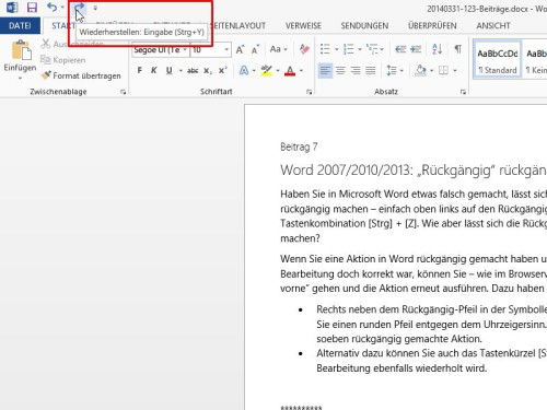 Word 2007/2010/2013: „Rückgängig“ rückgängig machen