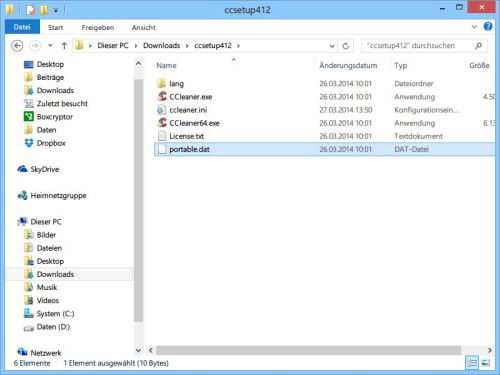 Portable CCleaner: Beim Update die Einstellungen beibehalten