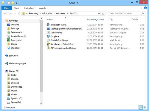 Über das Kontextmenü lassen sich Dateien an eine andere Stelle kopieren – etwa einen anderen Ordner. Allerdings hinterlegen manche Programme auch eigenständig Einträge im „Senden an“-Menü.