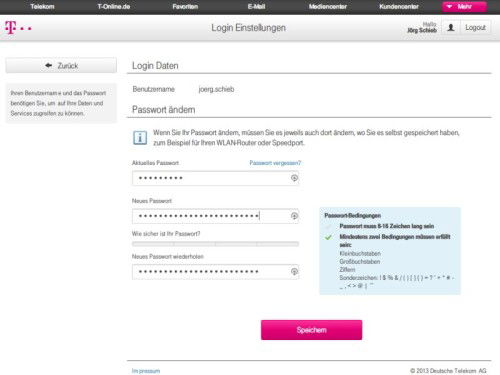 Medien-Center, kostenlose eMail, daten sicheres Hosting in Deutschland – all das gibt’s bei der Telekom. Aus Sicherheits-Gründen sollten Sie aber auch hier immer mal wieder Ihr Passwort ändern.