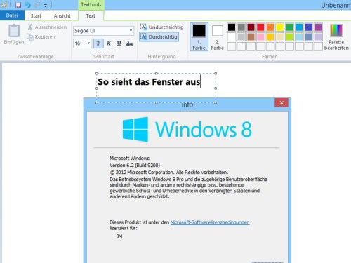 Paint in Windows 8: Durchsichtigen Text einfügen