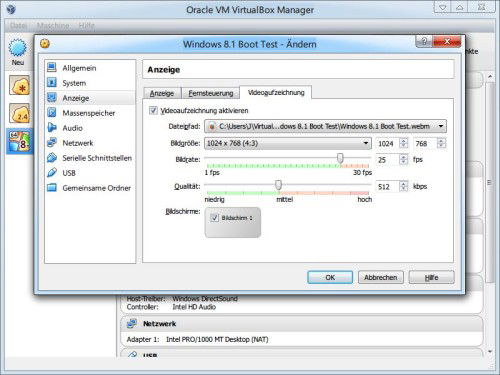 Video vom Bildschirm eines virtuellen PCs aufnehmen