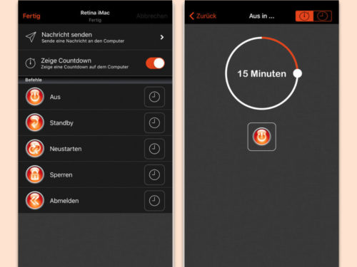 Damit sich der Computer über das iPhone ausschalten lässt, wird als Erstes der Remote Off-Client für Windows oder macOS installiert. Eine Konfiguration ist nicht nötig – einzige Voraussetzung: Der Computer und das Handy müssen im gleichen Netzwerk sein. Auf dem iPhone wird jetzt Off Remote installiert, dann stehen dort die Funktionen zum Herunterfahren, Sperren usw. zur Verfügung.