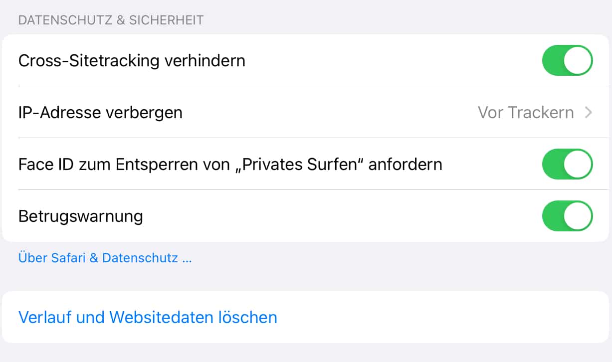 Während ihr schon mal in den Safari-Einstellungen seid, lohnt sich ein Blick auf weitere Datenschutz-Features: