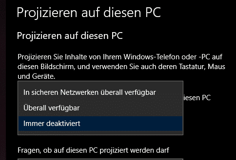 Für sensible Umgebungen gibt es auch Gruppenrichtlinien, mit denen Admins die Projektion komplett unterbinden oder nur für bestimmte Benutzer freigeben können.