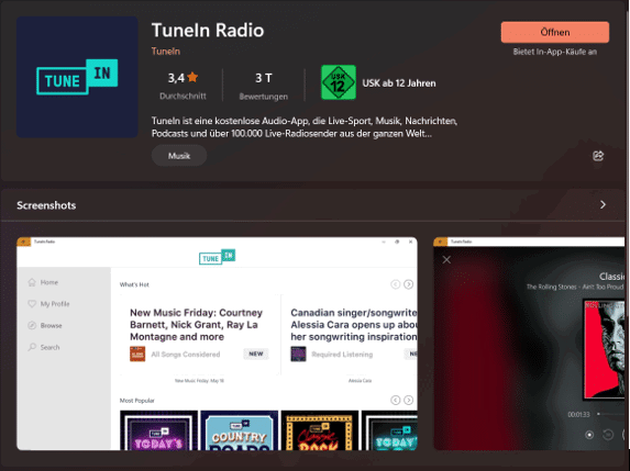 Die einfachste Möglichkeit, auf Eurem PC Radio zu hören, ist die kostenlose Tune-In-App. Die könnt Ihr direkt im Microsoft Store herunterladen.