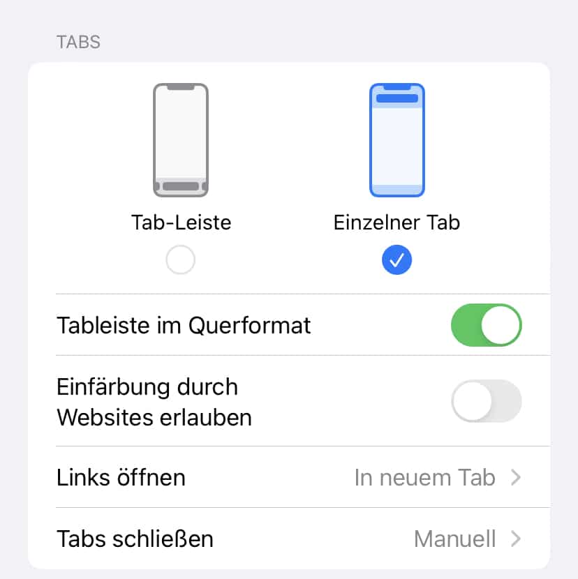 - Aktiviert Einzelner Tab, nur dann funktioniert die Adressleiste am oberen Bildschirmrand im Standard.