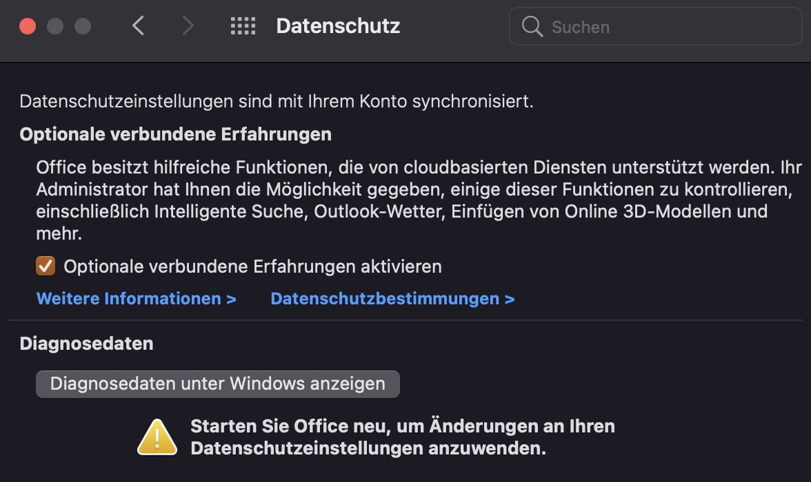 Die Office-Programme bieten auf Wunsch auch Zugriff auf Cloud-Ressourcen. Dieser ist aus Datenschutzgründen im Standard deaktiviert, weil für die Nutzung der Cloud Ihre Zustimmung nötig ist. Dazu klicken Sie in den Einstellungen von PowerPoint auf Datenschutz und aktivieren Sie Optionale verbundene Erfahrungen aktivieren (Mac) beziehungsweise Verbundene Erfahrungen aktivieren (Windows).