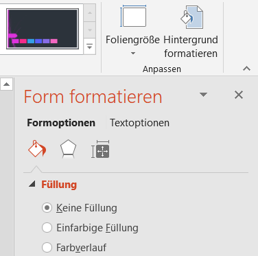 Hier können Sie ganz detailliert Linien und Füllungen der Folie verändern. Dabei bleibt die Grundstruktur der Vorlage erhalten, sie ändern nur einzelne Elemente. Auch wenn das sicherlich Arbeit ist, es geht deutlich schneller, als würden Sie die Präsentation komplett manuell anpassen.
