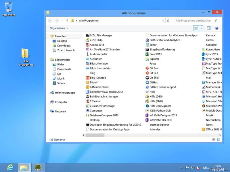 Per Doppelklick auf diesen Ordner öffnet sich nun jederzeit eine Liste mit allen Apps und Programmen. Von hier aus lassen sie sich natürlich auch starten.