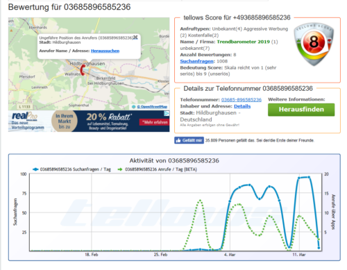 Sie können in der Auswertung erkennen, welche Informationen über die Rufnummer bereits vorliegen, wie viele Beschwerden über diese Nummer bereits von anderen Betroffenen gemeldet sind.