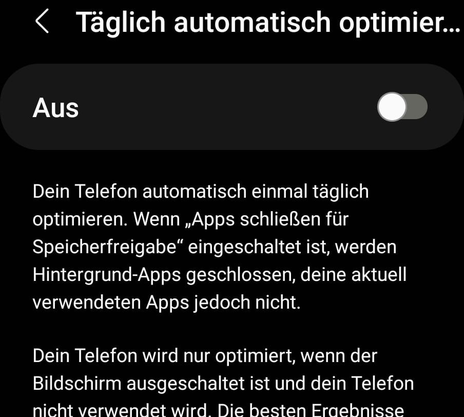 Ihr wollt das nicht immer manuell machen? Dann schaltet die tägliche automatisch Optimierung ein: