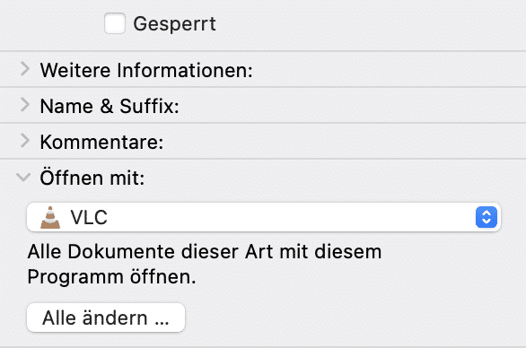 Öffnet dann den Einstellungsbaum unter Öffnen mit durch Klick auf das Größer-Zeichen. Wählt nun aus der Auswahlliste die App, die als Standard zum Öffnen dieser Dateien benutzt werden soll. Wichtig: Jetzt müsst ihr noch auf Alle ändern klicken. Erst dann wird die geänderte Zuordnung der Standard-App für macOS gespeichert. Ab sofort wird das gerade festgelegte Programm geöffnet, wenn ihr auf eine Datei dieser Erweiterung doppelklickt.