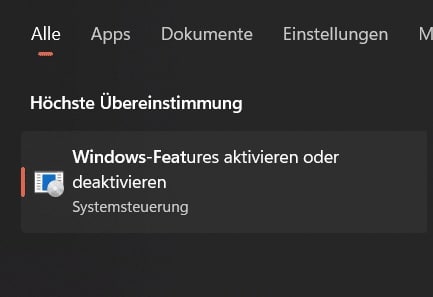 - Gebt im Windows-Suchfeld Windows Features ein und klickt dann auf Windows-Features aktivieren oder deaktivieren.