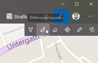 Öffnet die Karten-App über das Startmenü oder die Suchfunktion. In der oberen Symbolleiste findet ihr ein Stift-Symbol – das ist euer Werkzeugkasten. Klickt darauf und wählt das zweite Symbol aus: ein Lineal mit Streckensymbol. Das aktiviert das Messungstool.