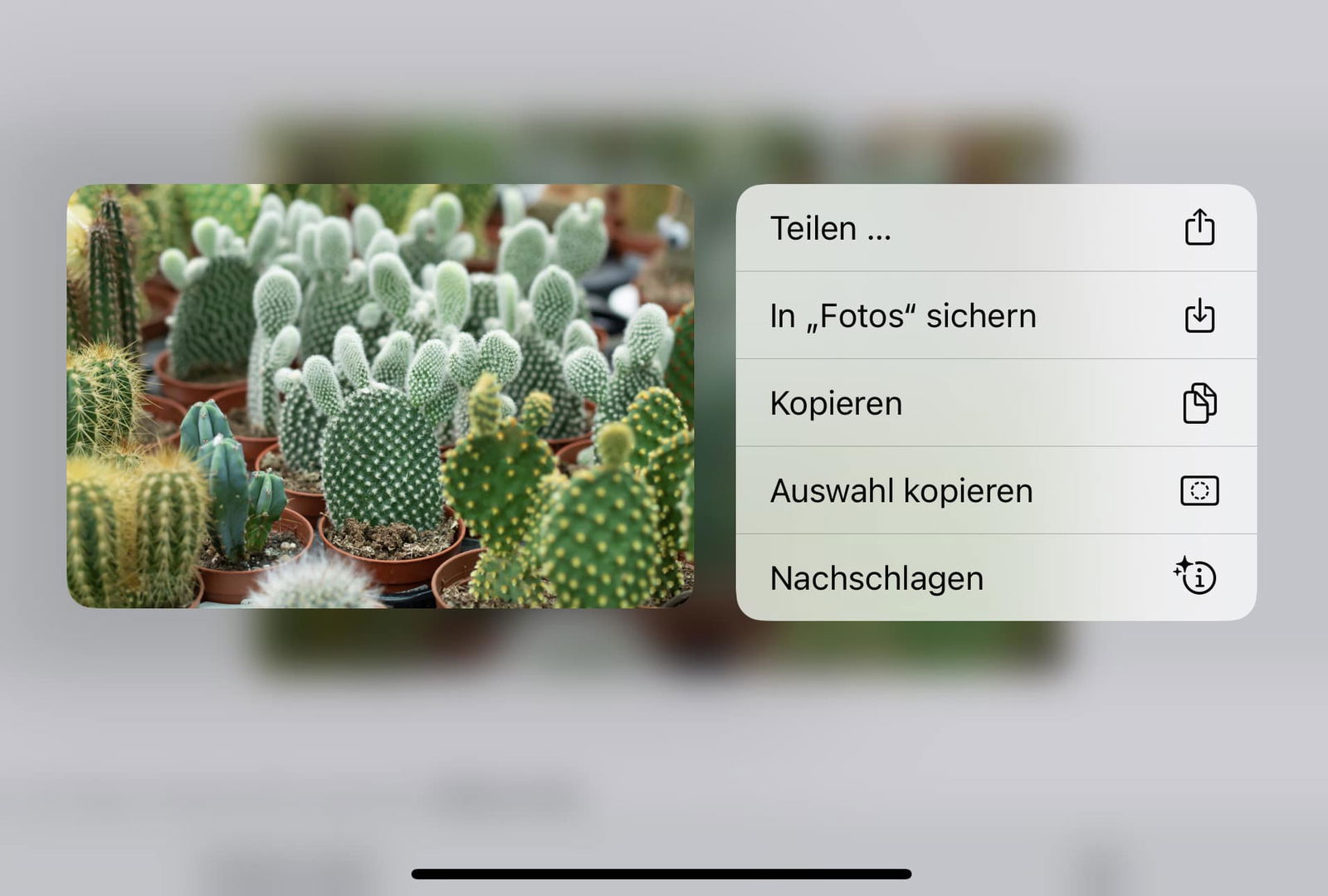 - Nach einem Moment öffnet sich ein Kontextmenü. Wenn Safari weitere Informationen zu diesem Bild hat, dann findet ihr darin die Option Nachschlagen.