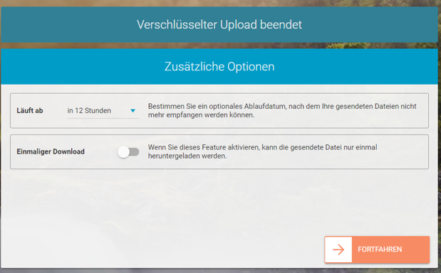 Auf Wunsch könnt ihr den Link zusätzlich noch durch eine PIN oder ein Passwort schützen und dann an den Empfänger versenden. Auf dem gesamten Weg ist die Datei verschlüsselt.