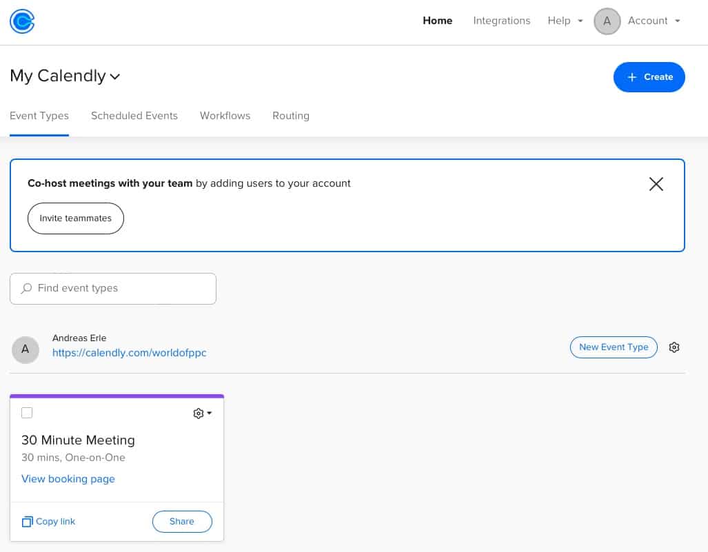 - Wenn ihr mit mehreren Personen für Termine zur Verfügung stehen wollt, dann klickt auf Invite Teammates. Das erlaubt es euch, für einen Timeslot gleich mehrere Termine anzubieten.