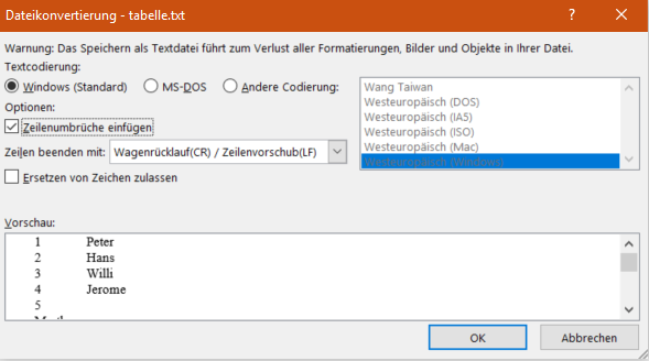 Der klassische Weg: Textkonvertierungs-Assistent