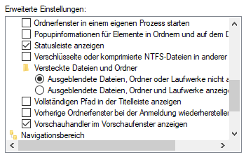 - Geschützte Systemdateien ausblenden sollte normalerweise aktiviert bleiben, denn diese Dateien sind die kritischsten und können bei versehentlichem Löschen den meisten Schaden anrichten.