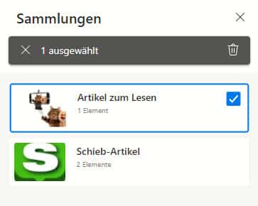 Mit der Zeit sammeln sich schnell dutzende Sammlungen an. Hier ist systematisches Aufräumen angesagt. Um eine komplette Sammlung zu löschen, klickt ihr auf das kleine Kästchen links neben dem Sammlungsnamen. Dadurch wird die Sammlung markiert und es erscheint ein Papierkorb-Symbol über der Sammlungsliste. Ein Klick darauf entfernt die gesamte Sammlung unwiderruflich.