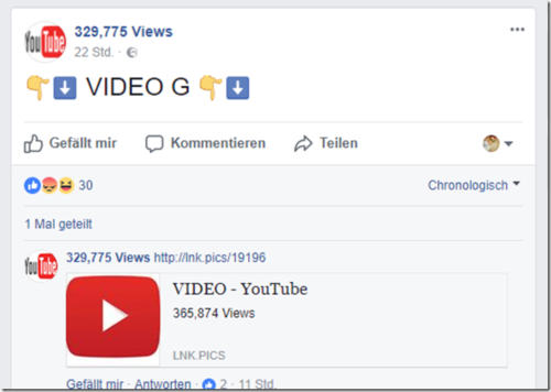 Denn wer auf den Link mit dem YouTube-Logo klickt, wird nicht nur auf eine Facebook-Seite gelotst, sondern bekommt früher oder später auch noch jede Menge Werbung auf dem Bildschirm angezeigt. Wenn man Pech hat und nicht richtig aufpasst, werden auch noch die persönlichen Zugangsdaten zum Facebook-Konto abgegriffen – und diese wiederum benutzt, um Freunde und Kontakte anzuschreiben.