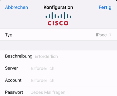 VPN-Verbindung am iPhone einrichten (IPSec)