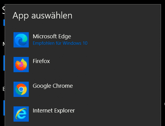 Windows hat für alle Dateitypen, aber auch für unterschiedliche Anwendungen Standardanwendungen hinterlegt, die Sie als Benutzer ändern können. Dazu klicken Sie in den Einstellungen von Windows 10 auf Apps > Standard-Apps und rollen hinunter bis zur Option Webbrowser. Klicken Sie auf den Eintrag, dann zeigt Ihnen Windows die Liste der installierten Browser an.