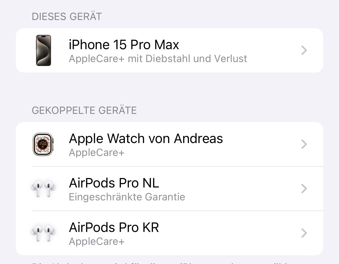 - Unter Dieses Gerät seht ihr das AppleCare+
