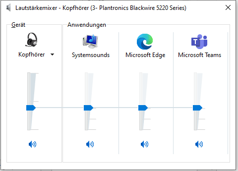 - Unter Anwendungen findet Ihr die Standardprogramme, die gerade laufen und vor allem daran an den Lautstärkereglern auch eine Aussteuerungsanzeige.