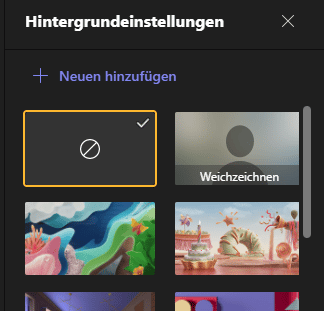 Teams bietet eine Vielzahl von vorgefertigten Hintergrundbildern. Die könnt ihr mit wenig Aufwand verwenden: