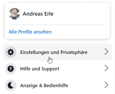 - Sucht nach „Einstellungen & Datenschutz“ oder einem Zahnrad-Symbol. Bei Meta ist das mittlerweile oft durch drei Punkte oder Linien symbolisiert.