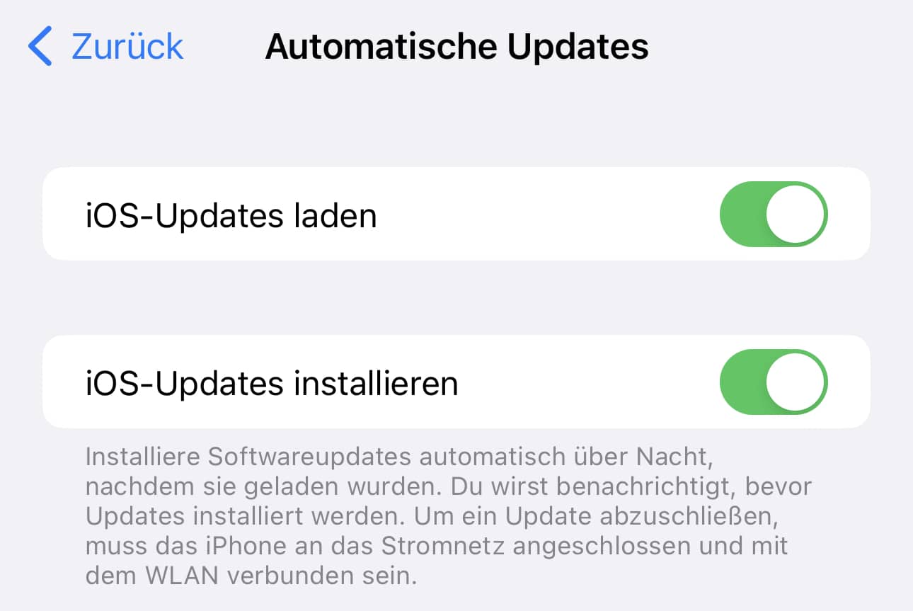 - Hier könnt ihr getrennt steuern: iOS-Updates laden und iOS-Updates installieren.