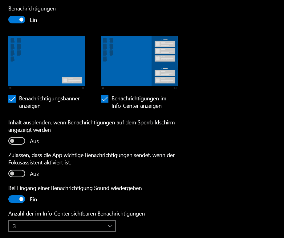 - Sowohl die Benachrichtigungs-Banner als auch die Benachrichtigungen im Info-Center könnt Ihr separat steuern