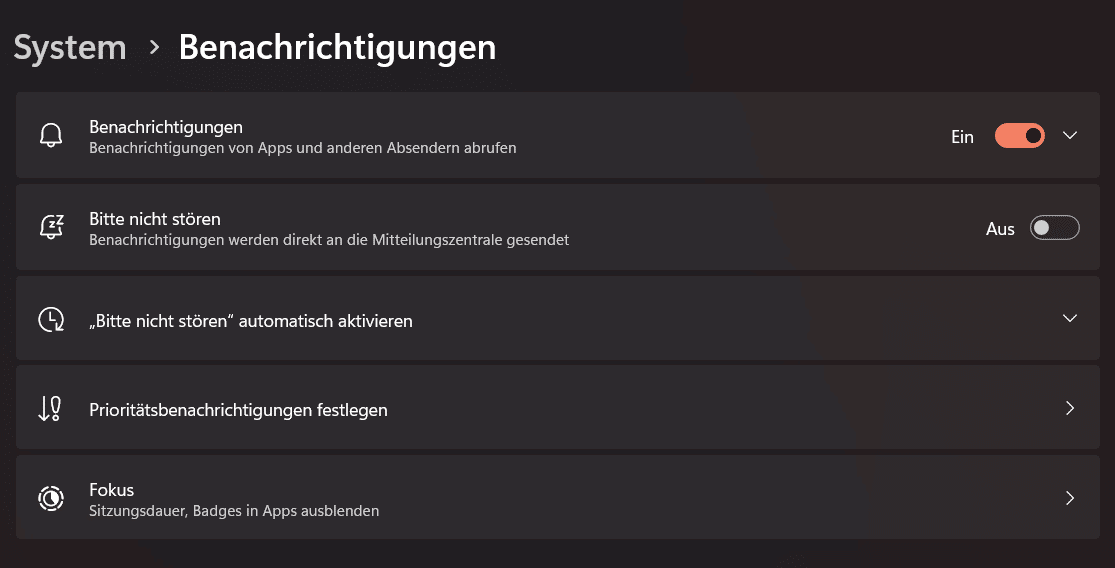 - Fokus-Modi verwenden: Separate Benachrichtigungs-Profile für Arbeit, Gaming oder Freizeit