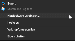 - Klickt mit der rechten Maustaste hinein, dann unten im sich öffnenden Menü auf Netzlaufwerk verbinden.