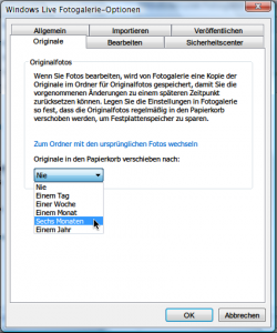 - Im Dialogfeld „Windows Live Fotogalerie-Optionen“ wechseln Sie zum Tab „Originale“.