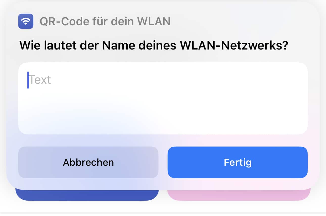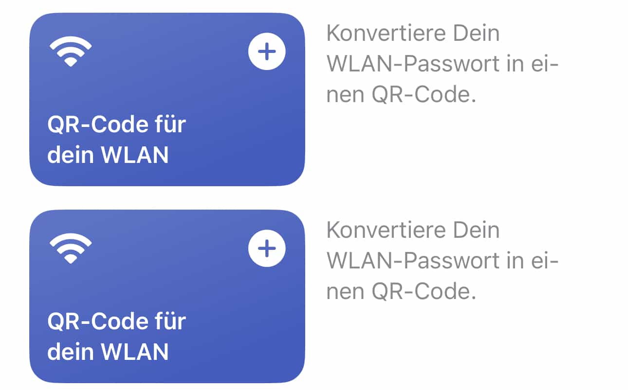 In diesem ersten Schritt habt Ihr nur einen Kurzbefehl angelegt, der die nötigen Informationen abfragt und daraus einen QR-Code generiert. Um diesen für ein spezielles WLAN anzulegen, müsst Ihr in der Kurzbefehle-App diesen Kurzbefehl antippen:
