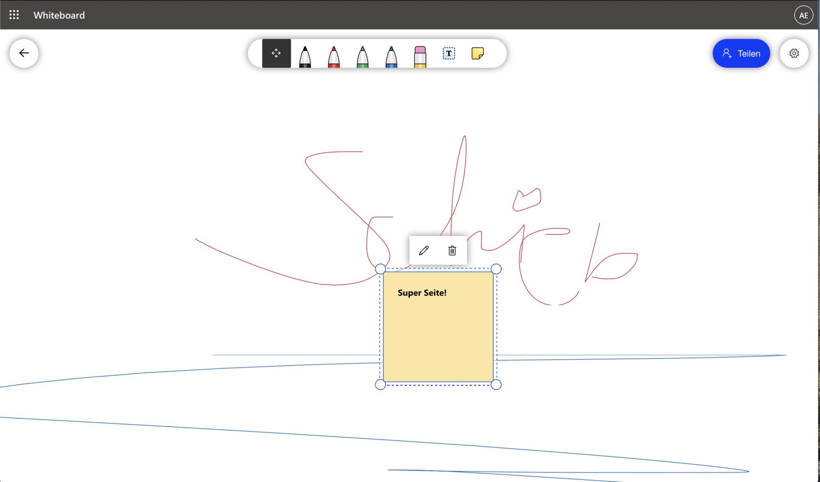 Sobald ein Whiteboard gestartet wird, können alle Besprechungsteilnehmer gleichzeitig daran arbeiten – Änderungen werden in Echtzeit synchronisiert.